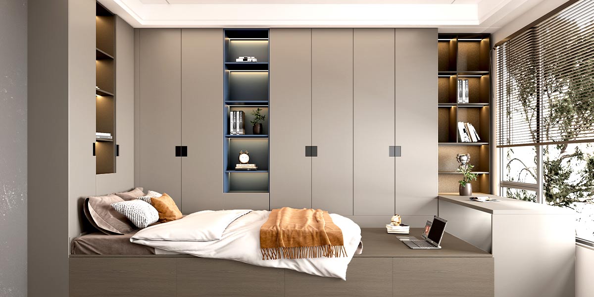 MelaWood® is perfect for your home and working areas – whether in your kitchen, bedroom, or lounge. It’s also a great solution for offices, hospitality, healthcare and retail spaces. It is ideal for medium-duty vertical and light horizontal applications, such as freestanding and built-in cupboards, door and drawer frontals, carcasses and shelving, wall cladding and interior building elements.